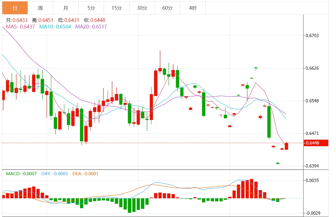 周四亚盘,澳元/美元上涨,现报0.6447附近,澳元/美元受到风险情绪改善和美国经济日历疲软的提振。 市场基本面热分析 本周公布的美国数据显示,美国消费者保持弹性,而工业生产保持高位。在负面方面,由于抵押贷款利率上升,美国建筑许可和新屋开工率大幅下降。抵押贷款银行家协会(A)透露,30年期抵押贷