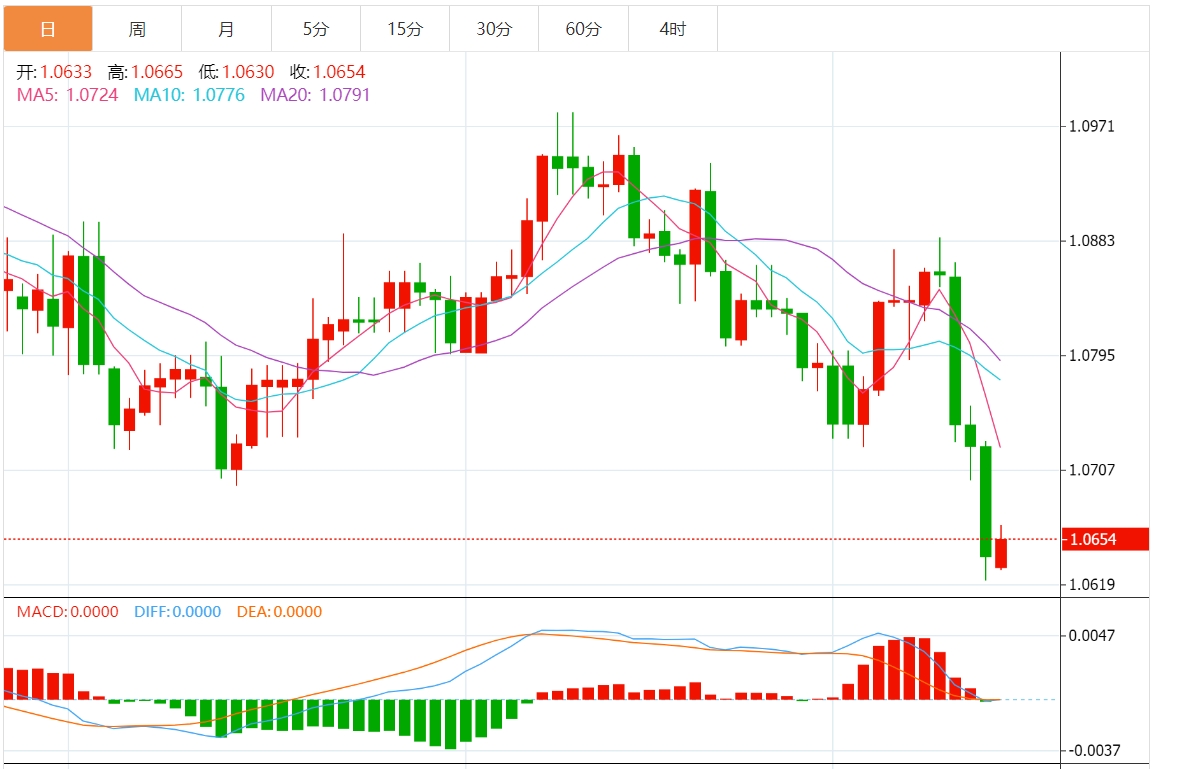 欧元/美元从上周五触及的五个月低点1.0622反弹,周一欧洲早盘徘徊在1.0660附近。由于欧洲央行(C)和美联储(Fd)透露了不同的货币政策前景,欧元/美元面临下行压力。 投资者正等待周一公布的欧元区3月份工业生产数据。此外,投资者的注意力将转移到将于当天晚些时候公布的美国零售销售数据上。 欧洲央行