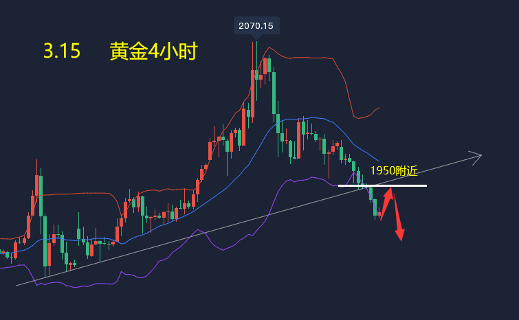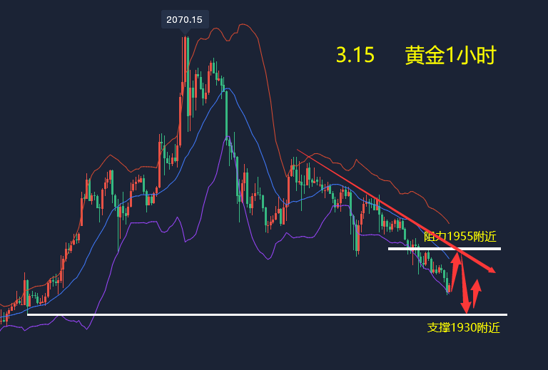 消息面: 周二(3月15日)亚市盘中,现货黄金震荡微跌,延续隔夜跌势,一度创逾一周新低至1939.20美元/盎司,俄务会谈延续提升了通过非战争手段解决地缘局势的预期,市场风险偏好回升,打压了黄金的避险需求,10年期美国国债收益率攀升至2019年7月以来最高水平,也降低了无息黄金的吸引力。市场的目光进一