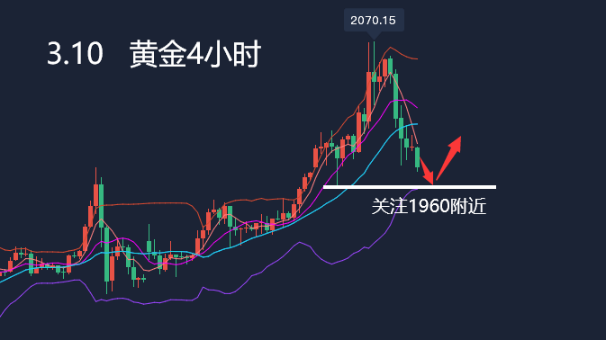 周四(3月10日)亚市盘初,现货黄金震荡下跌,延续隔夜跌势,目前回落至1970美元附近,在乌克兰高层智囊称对讨论俄罗斯提出的中立要求持开放态度后,大宗商品普遍下跌,黄金也跟随跌势,现货黄金周三大跌逾3%。技术面,日线级别K线出现了“乌云盖顶”的顶部信号,投资者需要予以警惕。整体来看,风险偏好的关键将取决