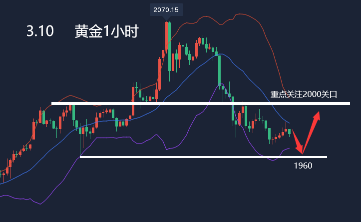 消息面解析: 周五(3月11日)欧洲时段,现货黄金震荡微跌,目前交投于1986美元附近,自俄乌爆发地缘冲突局势以来,黄金大多上涨,各国央行可能因此会放慢升息步调,昨日欧洲央行维持利率不变则可见一斑。地缘政治风险看起来短期内不会消散,代表金价还有上涨空间。而通胀数据对黄金来说犹如“双面刃”
