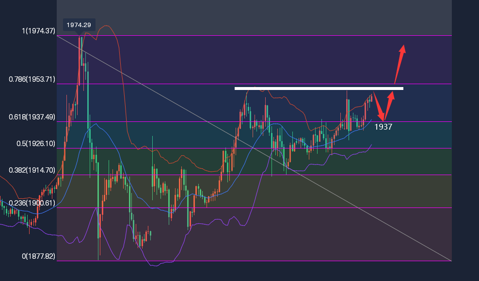 周一(3月7日)亚市盘中,黄金期货维持大涨态势,目前交投在1983美元/盎司附近,日内大涨近30美元;亚市早盘期金一度突破2000美元/盎司大关。俄乌战火冲击波仍在持续,在乌克兰战争期间,能源价格飙升和对供应冲击的担忧扰乱了大宗商品市常 【黄金走势分析】 周线上,周线收大阳线,目前处于