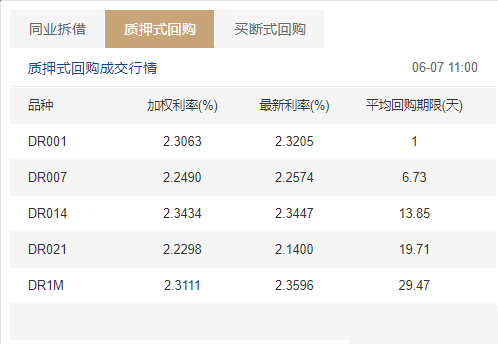 中国央行继续开展100亿元逆回购操作,持平到期。早盘银行间隔夜质押式回购加权平均利率续涨并迈向2月来最高;七天升幅稍逊,且与隔夜继续倒挂。截至北京时间11:00,1天期回购利率涨12个基点,报2.3063%;7天期回购利率涨7个基点,报2.2490%。彭博援引交易员称,早盘大行等融出有限,隔夜资金尤其紧张,非银有一些融出但还是满足不了需求。