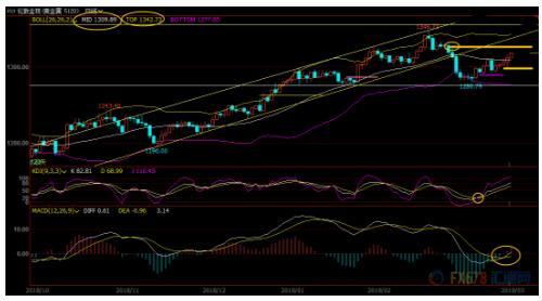 下方1311.30已结转化为初步支撑所在,在失守该位置前,后市偏向多头,布林线中轨支撑在1304.79附近,若意外失守该位置,则削弱短线看涨信号。