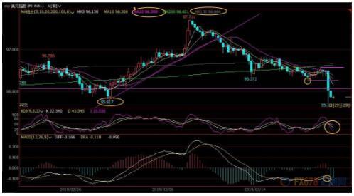上方5均线阻力在96.15附近,然后是96.29附近阻力,收复该位置前,后市偏向下行,100均线阻力在96.66附近,若意外收复该位置,则有望扭转跌势。