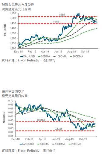 尽管最近有报导指第一阶段中美贸易协议的时机(很可能会推迟到明年),但市场对最终达成协议的乐观情绪仍然高涨,特别是在有媒体报导指美国高层谈判代表已被邀请到北京在周四的美国感恩节假期之前举行新一轮的面对面对话之后。地缘政治紧张局势放缓导致金价升势受挫。然而,现货金兑美元料在2016年高点1375将有强大的支持。