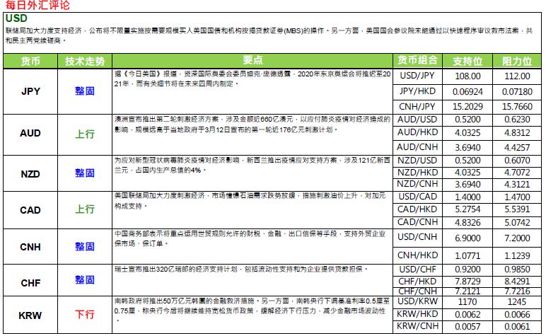 =607; 美国联储局推出新一轮纾因措施,将现有国债及按揭支持证券的购买规模扩大,以完全满足市场需要为止。此外,亦会向美国家庭、小型企业及大型雇主提供前所未有一系列信贷支持,当中包括建立以学生贷款、信用卡贷款及美国政府支持小型企业贷款为抵押品的新信贷项目,以及购买大企业债券,并且向这类企业直接发放贷款等,应对新冠病毒疫情对新经济造成的严重破坏。