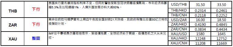 § 上周五(27 日) ,加央行突然宣布减息50 点子,把其官方息率推低至0.25% 低水平,与美国联邦储备基金息率0% - 0.25% 范围的项部看齐。是次减息,是加央行今个月内的第三次。减息是市场意料中事,只是估不到是上周五执行而已。所以减息后对加元汇价未见带来负面影响。相反,随着整体美元走弱,加元联同一众商品货币兑美元均见上升。不过,面对只有约22 美元的纽约期油价格,料加元暂难大幅走强。另外值得留意,本周三便是4 月1 日,油组与俄罗斯的减产协议将届满。市场担心如无新协议,沙特阿拉伯与俄罗斯如一同增产,油价往后将难于上升。