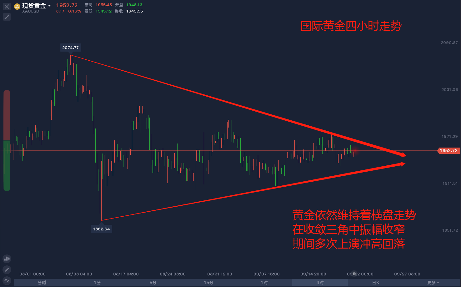 ÎÒÃÇÀ´¿´»Æ½ðËÄСʱ×ßÊÆ£¬»Æ½ðÒÀȻά³ÖןáÅÌ×ßÊÆ£¬ÔÚÊÕÁ²Èý½ÇÖÐÕñ·ùÊÕÕ£¬ÆÚ¼ä¶à´ÎÉÏÑݳå¸ß»ØÂ䣬µ«ÕâÒÀÈ»ÔÚÔ¤ÆÚÄÚ£¬½üÆÚÔÚ´óѡǰ£¬Ã»ÓÐÌØ´óÀûºÃµÄǰÌáÏ£¬ºÜÄÑÍ»ÆÆ£¬MACDÖ¸±êÔËÐÐÔÚ0Öḽ½ü£¬Î´Äܸø³öÓÐÏÞÇ÷ÊÆ£¬ÉÏ·½Ñ¹Á¦Î»ÖÃÔÚ1971Ò»Ïߣ¬Ï·½Ö§³ÅλÖÃÔÚÒ»Ïß