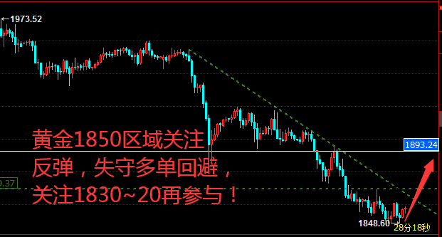 盘面来看,黄金跌势放缓;晚间重点关注1850~45区域支撑,预计这里将走反弹;上方阻力重点在1870区域,之下弱势,上攻则强势,关注进一步冲高1880以及1890~95区域!下方失守1845~50区域,行情有望加速,关注下跌1830~20区间!因此,操作上,建议首先1850上逢低买入短线多单,风控日内新低;目标关注1870以及1880区域。做空位置,则建议1880以及1890~95压制参与!下方今晚任何时候跌至1830~20布局多单,目标1900以及2000!