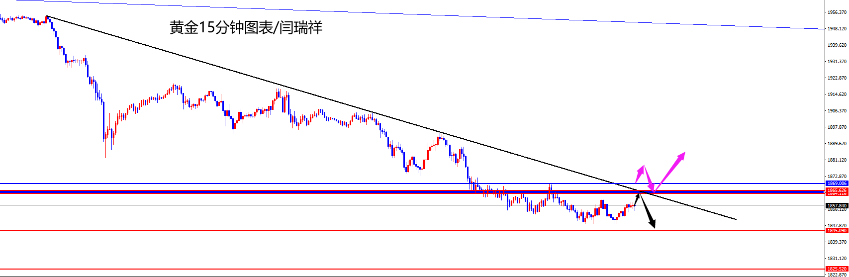 黄金今日早间开盘后价格震荡式下跌,价格再次破位新低,欧盘期间价格一直维持修正状态,目前总体持续看空,但是今晚也将决定黄金是持续弱势大幅下跌还是开启震荡修正,目前重点关注1869位置得失,由于目前总体属于看空,价格并没有破位关键位置,今晚操作方面我们重点关注1864-65区间阻力空,激进者依托1860附近先空,上方统一防守1870位置即可,不破1869位置将持续再次大幅下跌,毕竟目前总体下跌的幅度还没有到,此次波段空单最少要看到1950-70区域,所以说今晚是黄金重要的时间点,晚间美盘重点关注黄金价格的表现。
