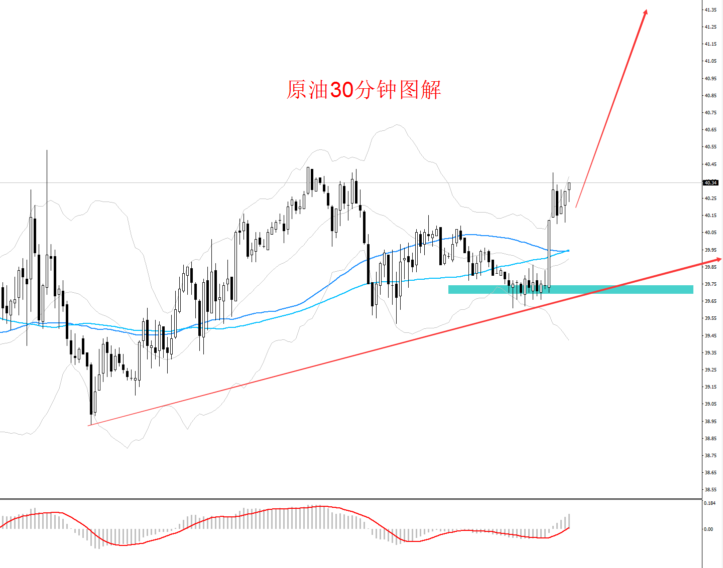 具体操作策略:40.2附近直接多,止损大阳低点39.7,不设止盈