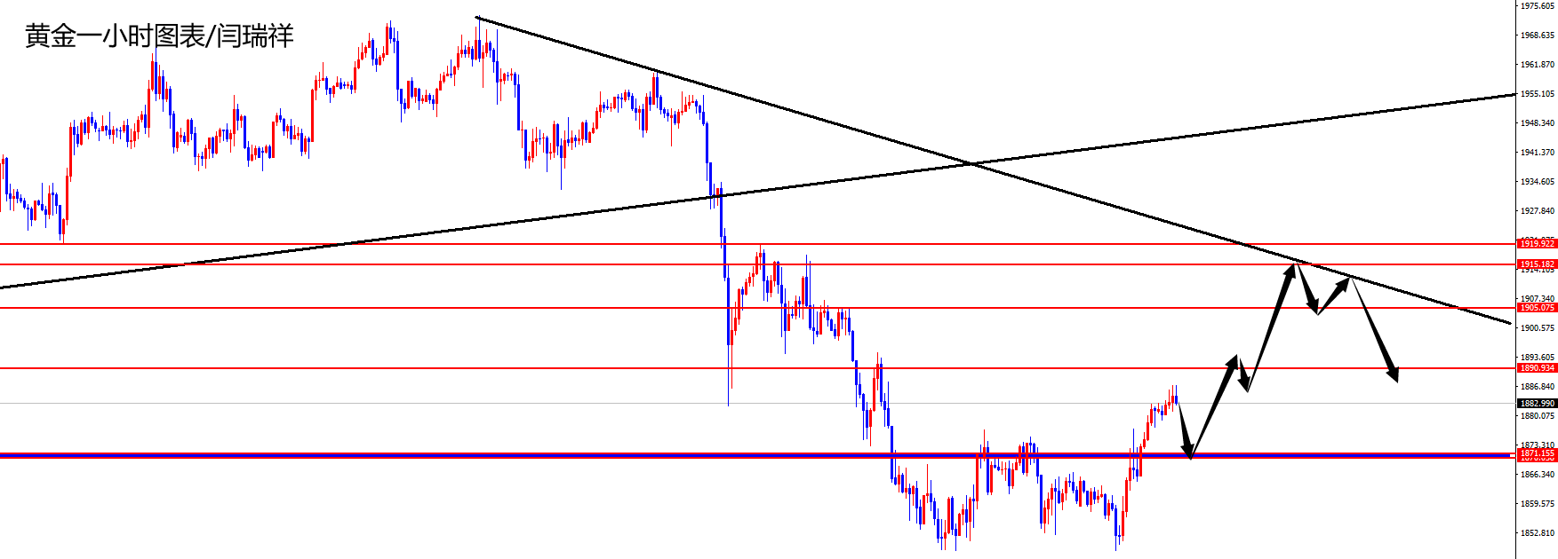 黄金1870-71区间多,防守1864,目标1890-1905(周内到达1915区域中线空)