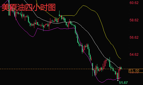 原油4小时弱势下跌触及布林道下轨放缓跌势,同时启稳反反抽昨日下跌空间。指标进入低位,短线有反弹需求。小时图一波诱空式的下探回升,昨日已强调。低位看空不追空,反复下探以中短线低位做多为主,主要是周线级别的反弹需求。目前小时图连阳反抽启稳,短线轻微止跌。今日短线依托51.60上方做防守,回测继续低位做多。综合来看,今日操作思路上陈文龙个人建议以回调做多为主,反弹高空为辅,上方短期重点关注53.8-54.0一线阻力,下方短期重点关注52.2-52.4一线支撑。