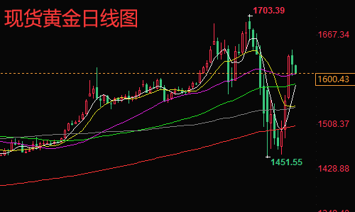黄金日线来看,宽幅震荡;技术面来看,MACD红色动能柱初步显现,RSI指标交投在50水平附近,KDJ随机指标向上升破50水平,关注进一步走高的可能。金价顶破了布林线中轨1600整数关口,若能守住该位置,则有望进一步涨向周二高点1640附近阻力;若金价回落至布林线中轨下方,则削弱短线看涨信号;5日均线支撑在1577附近,较强的支撑在前期跌势的38.2%回撤位1547位置,目前该位置已经转化为支撑位所在,若回落至该位置下方,则增加重回跌势的风险。