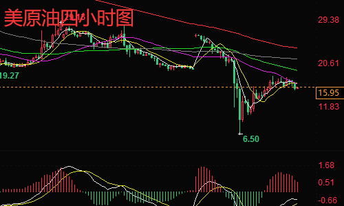原油日线图显示,日线收盘阳线十字星形态,高价没有破前高,低价破前低,出现内包线形态,周五整体行情波动较前一日出现了萎缩迹象,均线空头排列运行在24.5上方形成压力,在趋势指标上显示,空头动能持续放量中,RSI指标在触及超卖区域后出现拐头向上走势,整体表现低位反弹。原油小时图显示,原油在触及6.547美元/桶位置后出现了一波上涨走势,最高给到了18.2美元/桶位置,油价出现了区间震荡走势中,整体维持在15.6-18.2区间震荡中,如油价进一步出现下破,大概率将出现再次下探的概率,在下方支撑我们考虑15.0-14.4美元/桶位置,上方若进一步上破将考验20.2-22.5美元/桶位置压力。综合来看,今日短线操作思路上陈文龙个人建议以反弹高空为主,回调做多为辅,上方短期重点关注16.8-17.0一线阻力,下方短期重点关注14.3-14.5一线支撑。