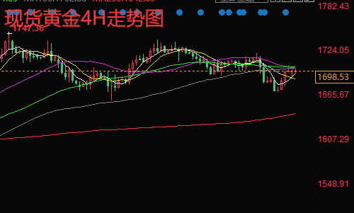 现货黄金从4小时来看,黄金维持震荡整理,MACD金叉,绿色动能柱缩减,KDJ金叉随机指标走高,指示黄金接下来料继续维持震荡上涨。当前黄金反弹承压4小时级别布林中轨压力,并且今日行情还在昨日反弹高点下方运行,多头动能不足,虽然下方受到1690区域的支撑,当前属于构建双顶下跌后的震荡修正行情,暂时维持1690-1710区域内震荡。综合来看,今日短线操作思路上陈文龙个人建议以回调做多为主,反弹高空为辅,上方短期重点关注1708-1710一线阻力,下方短期重点关注1688-1690一线支撑。
