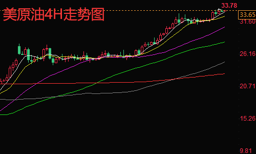 原油从4小时来看,油价贴着短期均线单边上涨,整理之后破高延续,目前10单位均线就是多头强弱临界点,强势行情,回踩空间小,且能快速收复,MA10均线就是分水岭,回踩不破单边上涨仍延续,回踩下破就会转为震荡修正,再重新启稳,整体趋势仍处于短线单边多头。原油小时图显示,原油在EIA公布之前连续上涨,最高到达33.7,随后EIA数据公布利多,但是还是沉陷下跌,这是因为在EIA之前就已经提前走完了预期,所以短期出现回调修复。综合来看,今日短线操作思路上陈文龙个人建议以回调做多为主,反弹高空为辅,上方短期重点关注34.8-35.0一线阻力,下方短期重点关注32.4-32.6一线支撑。