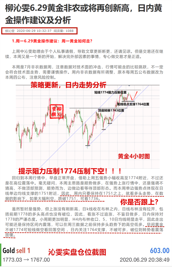 1.周二6.30黄金操作建议:周二黄金如何走?