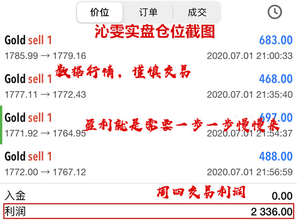 所以晚间的交易,加上数据的影响,金价在1789附近受阻回落,因此开始在1785附近给到空单的布局,中间小获利出局落袋为安,目标放在1765支撑位置附近。今日晚间有数据,因此交易比较的谨慎小心,在支撑1765上,主要的交易思路就是反弹空不变,晚间看1765附近支撑是否企稳,再去考虑给到多单的布局。消息面是沁雯无法掌控的,也是无法预测的,防止躲过了突然拉升可能导致的大亏损,因此都是小获利出。交易4单,今日收割2336美金中间的过程可能会有些坎坷,但是结果还是满意的。