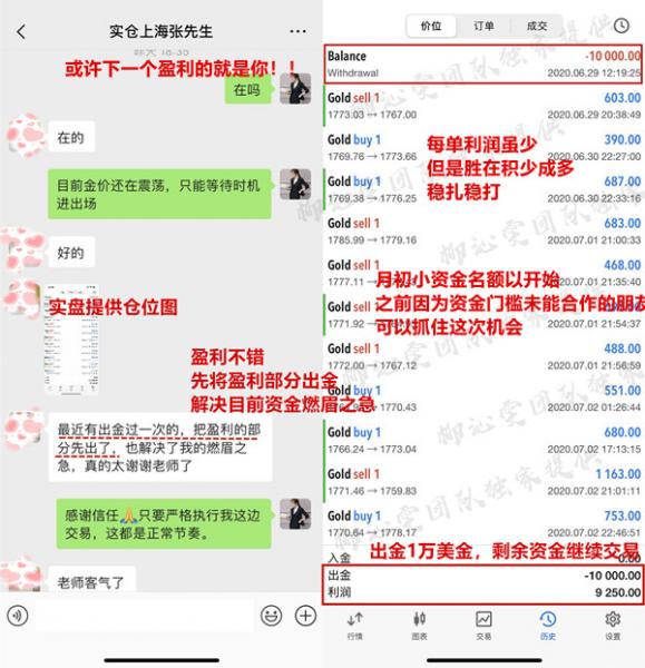 针对实盘提供一对一免费金油交易指导,包括实时单子进出场的提示,技术把控,资金仓位配比,风险控制等……有需要可以加入实盘指导。另外可以针对非实盘可以提供付费指导,收费根据资金量大小收取每单利润百分比,有需要可以具体了解。
