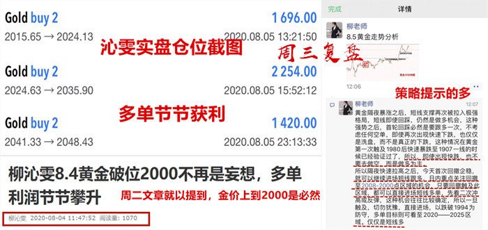 跟上我们交易的朋友先恭喜下大家了。我们今日交易3单,虽说金价没有回撤到位,但是我们多单盈利的依旧不少。第一单在2015多在2024利出,直接8美金先落袋为安;第二单继续在2024继续多,午后在2035再次传出捷报;第三单金价再次刷新高点,我们2041顺势再多,晚间休息前直接48附近获6美金!