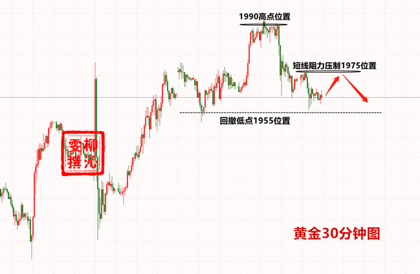 至于为什么从周一到现在一直关注这个点位,主要还是因为这个点位也还是上周四周五的高点附近,本周开盘到现在,小时周期实体部分没有站稳其上方,而且今天早间开盘,黄金持续向下试探,所以黄金日内思路主要就是以1975为压制看震荡,短线回落,关注1955这里即可。在美盘前,黄金谨慎去追涨杀跌,尽量在区间内多空。