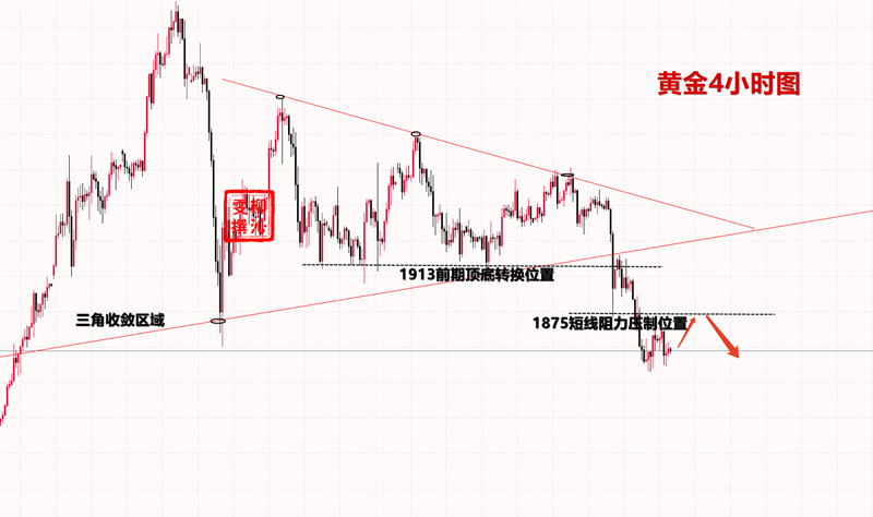 黄金的支撑位置1850-1830-1810;黄金的压力位置1870-1875-1880-1890-1900;所以在下周,我们选择1875上下布局二阶段沽空看跌运行向下。