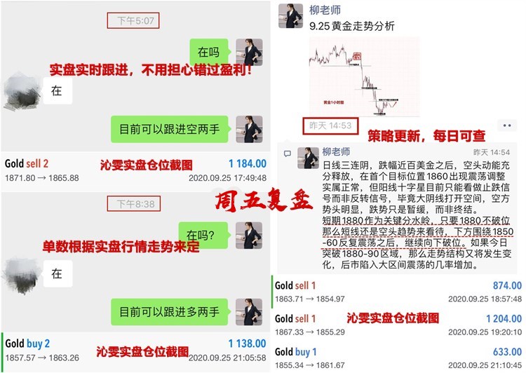 针对实盘提供一对一免费金油交易指导,包括实时单子进出场的提示,技术把控,资金仓位配比,风险控制等……有需要可以加入实盘指导。另外可以针对非实盘可以提供付费指导,收费根据资金量大小收取每单利润百分比,有需要可以具体了解。