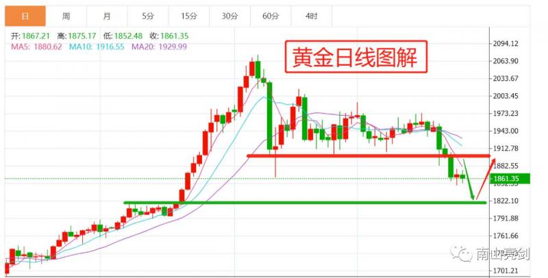 短线交易依托1872美金小压力做空,目标1860-1852!关注1844变盘点,跌破追空,如不能跌破,多头大概率短线反弹回补。激进者可依托1852一线尝试做多,快进快出!