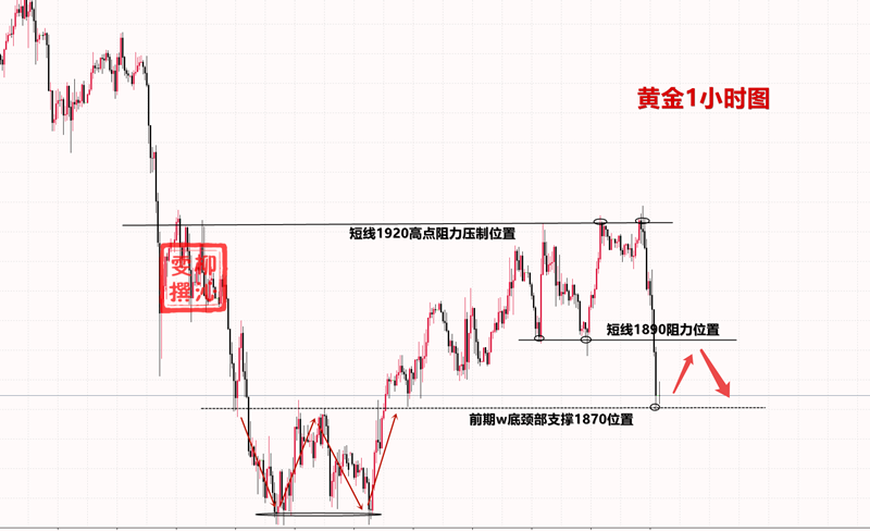 因此黄金触及到1895-1900区域,可以关注空单布局,守住1905的位置,不破向下看1880附近。