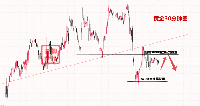 黄金方面来看,小时图收盘比较强势企稳在关键阻力1897之上,且美盘前持续震荡在1890之上,所以暂时调整策略后在隔夜冲高1897后收盘的实体价格1895位置考虑做多,防守在美盘前低点之下即可,向上沁雯预期会去测试依托1875为低点的上升趋势线破位后反抽确认阻力的位置,大概在1908区域,届时再考虑空一次看市场力度。