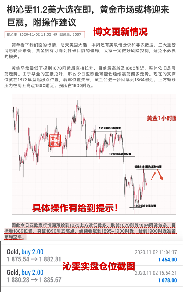 周一交易已经结束,周初鼓足干劲,火力全开,以王者姿态完美收官,思路依旧不变,多单1875以及回撤1880多均成功收割,两单10美金,但是晚间金价破位1890短线阻力压制位置,因此我们后面的交易比较的谨慎,也就此为一天的交易画上完美句号。