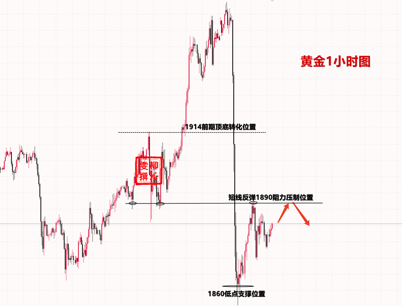 短期的上方阻力在1890-1900,是昨日的反弹高点,也是前期套牢盘阻力区间。下方支撑在1870-1860区域,是昨日回调低点支撑。今日先看1860-1900的区间震荡,关注亚盘是否会破位区间走出趋势。等待行情明朗后,欧美盘再进行布局。