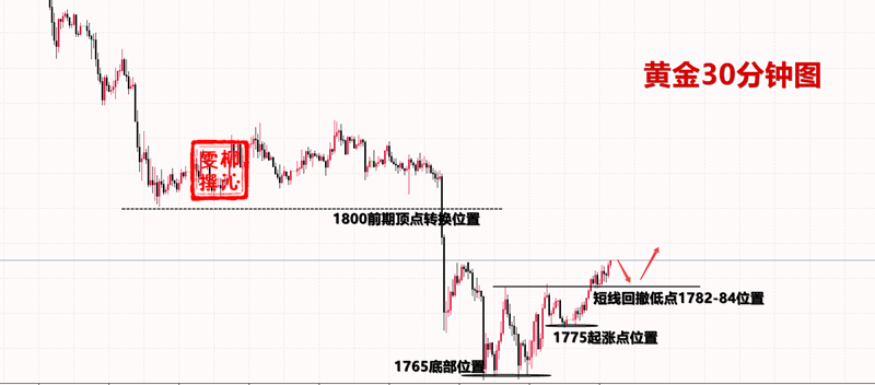 对于沁雯来说,交易就是说的少做的多就是,要见证实力,看交易。周一早间金价自1784起跌,到达下方1767附近企稳,午间我们直接在1770跟随多单,而后午后到达盈利点位1777附近利出;而后金价受阻早间短线压力位置1782开始回落,晚间反手在1777布局空单,节奏比较快,空单到达1771附近直接利出!