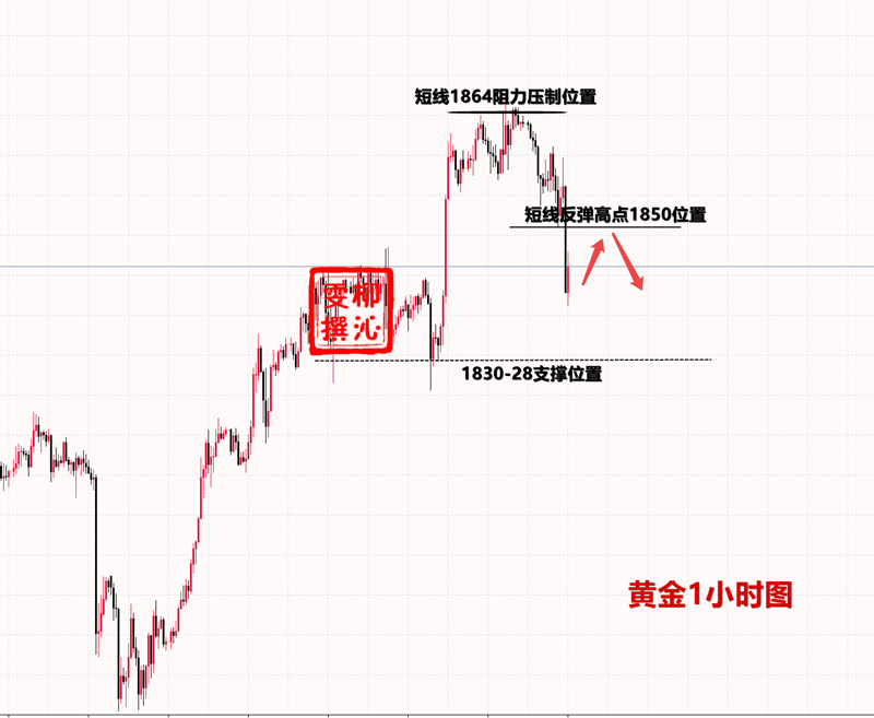 黄金要跌就不会给你太理想的做空位置,一旦给你位置一定是坑。刚才反弹到达1862一线,短线略显走强,这时候再扫空单的概率大。但是无论如何反弹,只要不高于隔夜高点1875防线,那么我们看空思路不变。