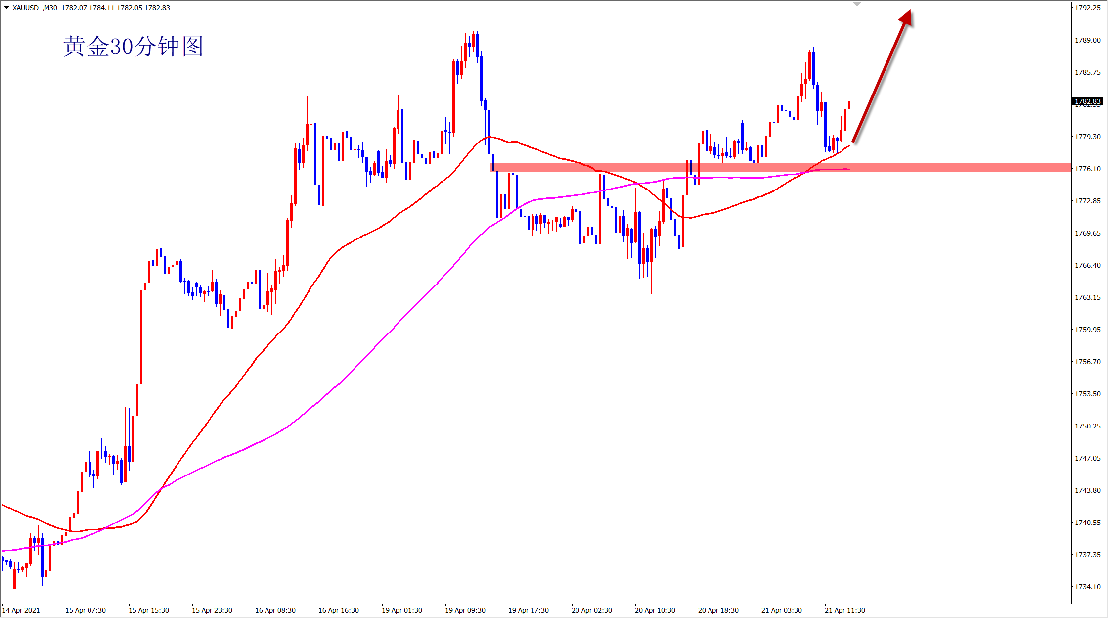 交易策略上锦磊建议:黄金回落1780多,止损1774,目标1790-1800(仅供参考,并不构成实际入场点位)