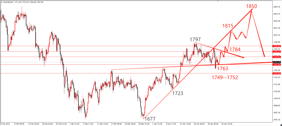 经历了昨日市场情绪冲击,预计今日黄金的交易量将有所缩小,不过我将在当前做出对黄金主观预期的转换, 以延续此前对黄金多头的期望,上看1815以及1850美元。经历了4月尾的修正,5月黄金大概率将进行上行,以修复1959—1676美元下跌所带来的情绪落差。