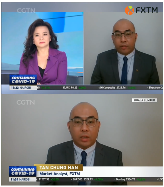近日,FXTM富拓 外汇市场分析师陈忠汉应邀亮相中国国际电视台CGTN《全球财经》栏目,就各国救市政策及其疫情影响发表专业评论: