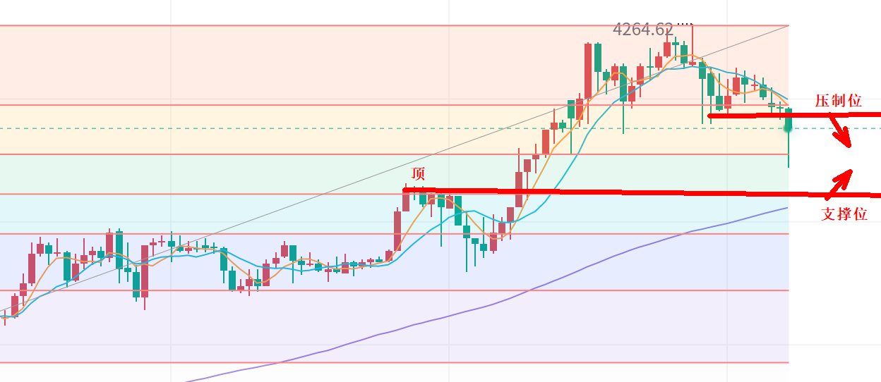 4,顶底转换位4222也是昨日4264下跌反抽382位置。