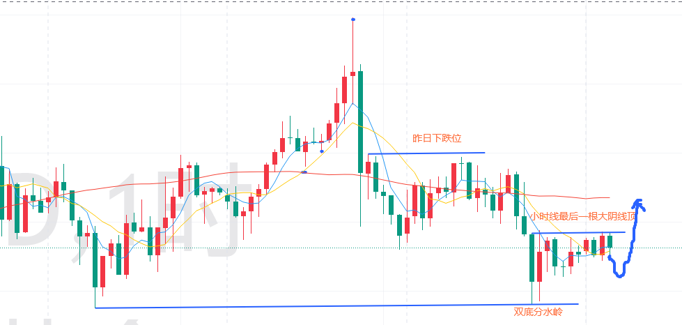 黄金分割382,小时线最后一根大阴线顶部,凌晨反抽的高点。