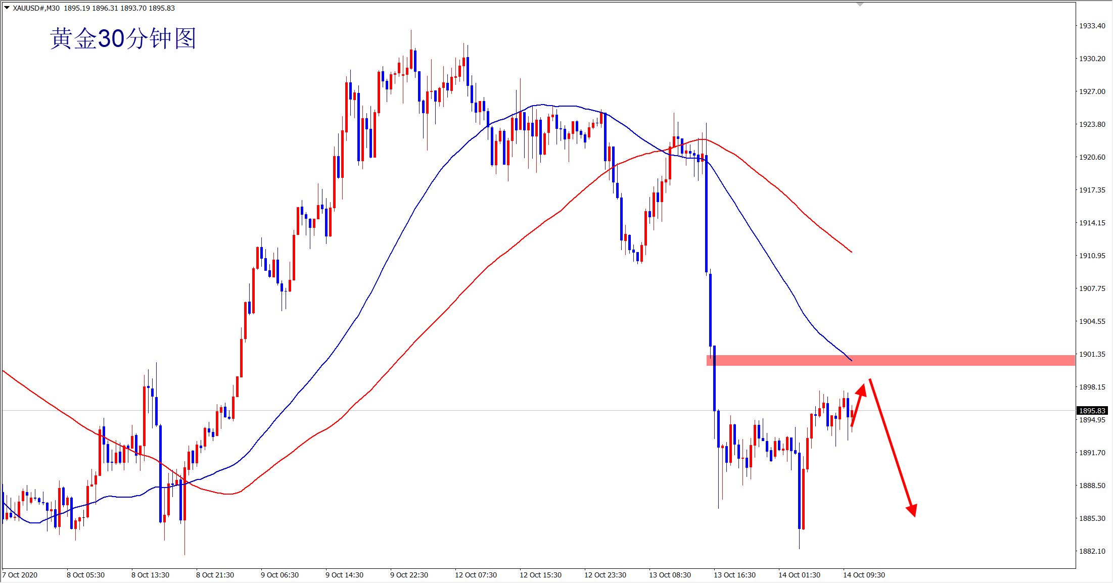 黄金早盘先跌,我们1890空单如期止赢,随后行情亚欧盘便开始了震荡反弹走势,但是下跌空头格局没有改变,现已反弹到位,1900附近可以直接进场干空了!