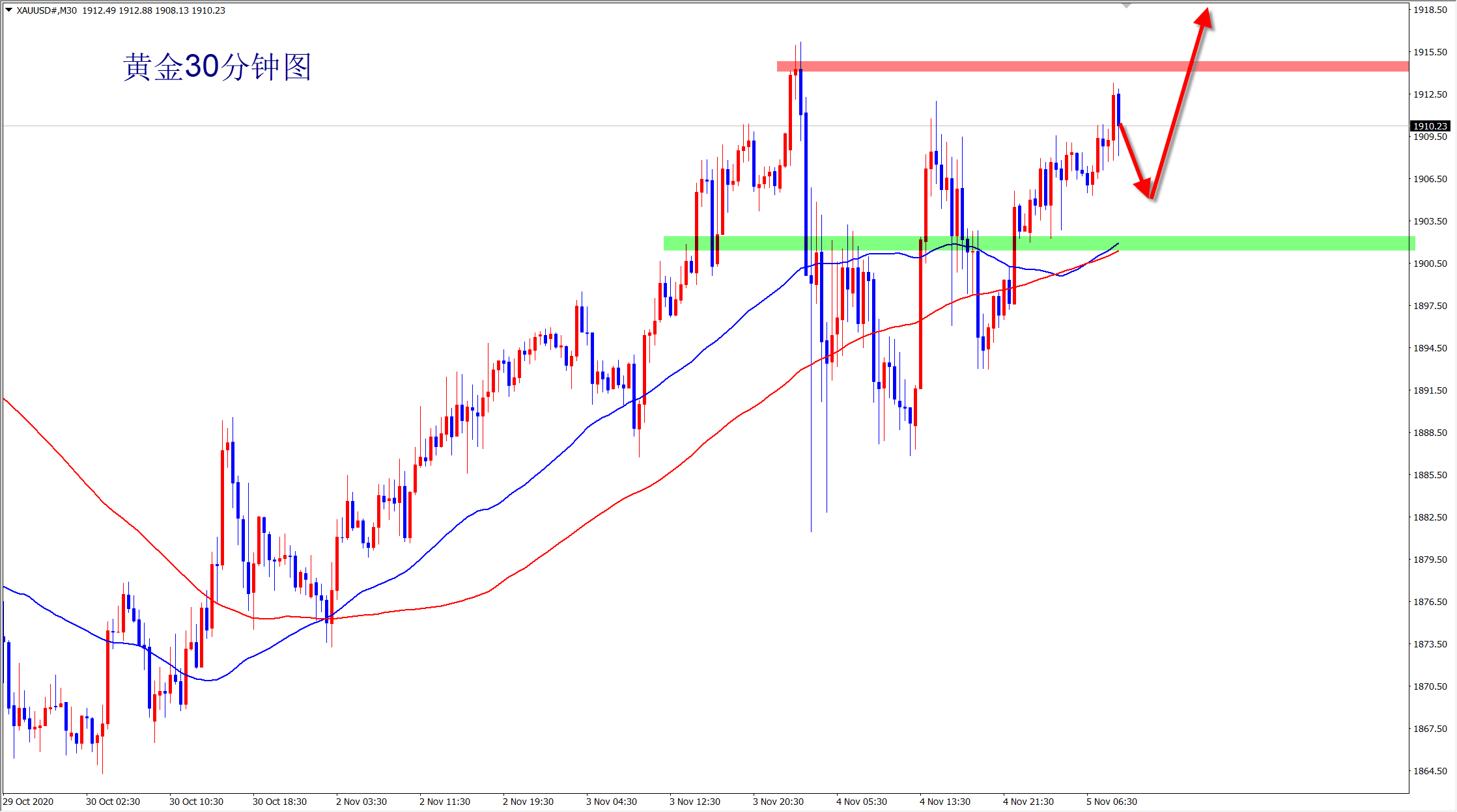 黄金涨势已经确定,操作上果断进场多即可,突破了接下来会是继续上涨的行情,而上方的进一步阻力是1926-32区域内,这是日线前高阻力,突破后黄金还有大波段机会!