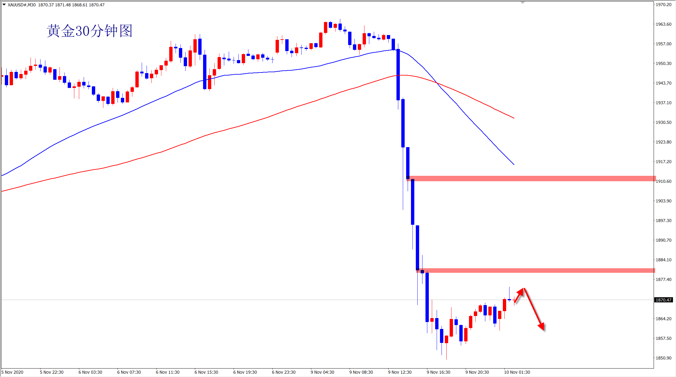 黄金亚盘先涨,欧盘遇阻1890阻力后跌,现在行情属于下跌后的震荡修正行情,空头走势不变,大跌之后必有余震,美盘1896下还是空!