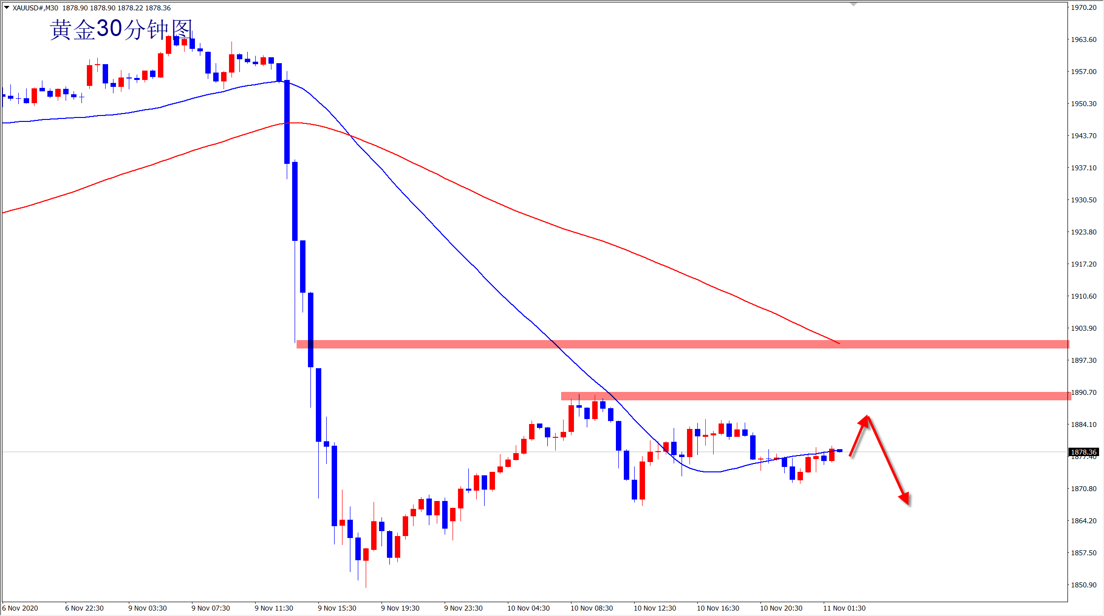 空头阴沉,跌跌不休,做空屡次获利,逆势抄底苦不堪言!我们继续践行顺势操作的原则,欧盘如果再次反弹1885附近还是继续空不变!但是空头强势的情况下很可能直接再次破位瀑布式暴跌,届时就要果断追随!