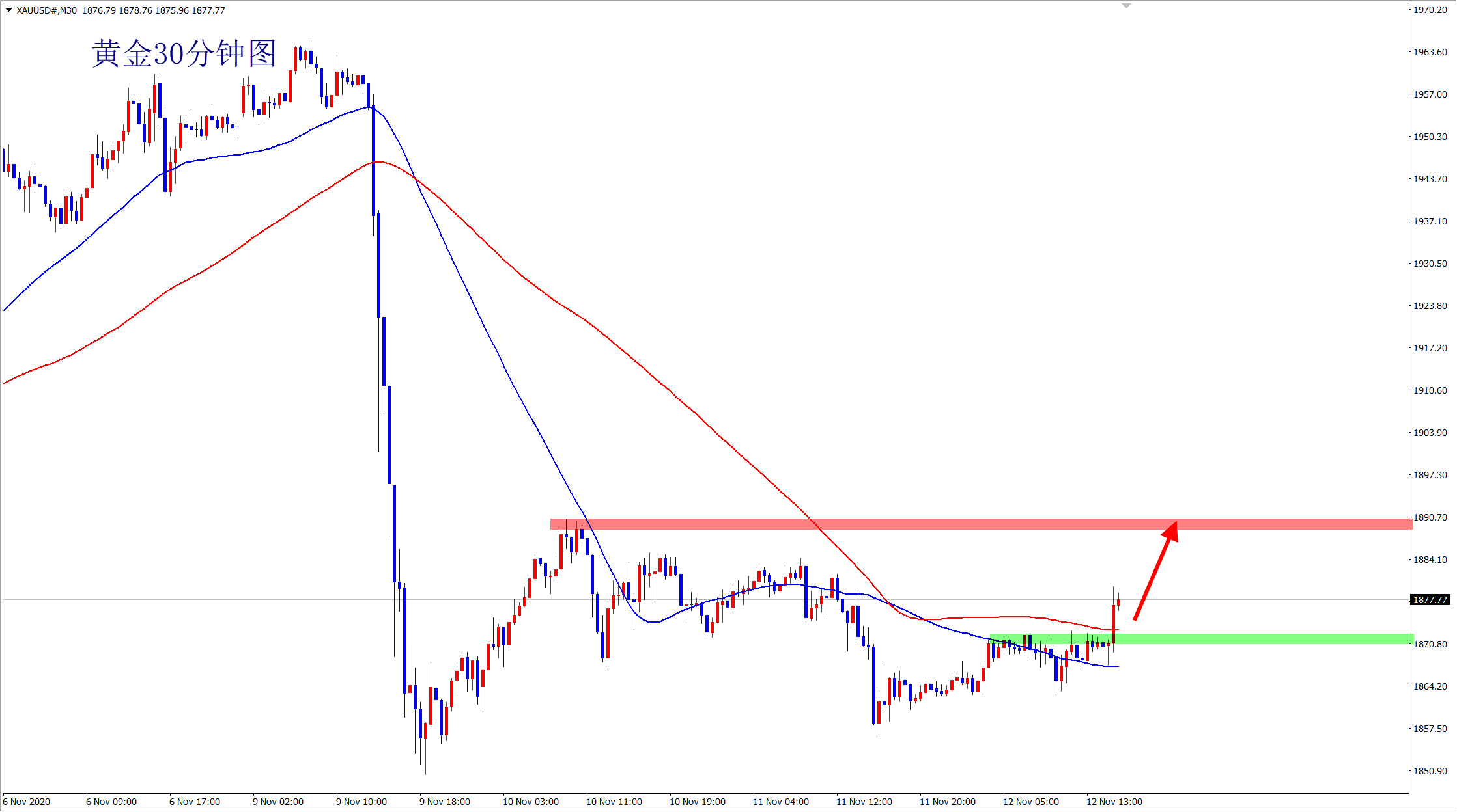 势不变则守,势变则随,顺应市场的节奏去进行,而不是与趋势背道而驰,当前黄金已经突破并站稳1875阻力,干多,美盘依托此支撑位置直接多即可!接下来行情要考验的是前期反弹高点1890一线!