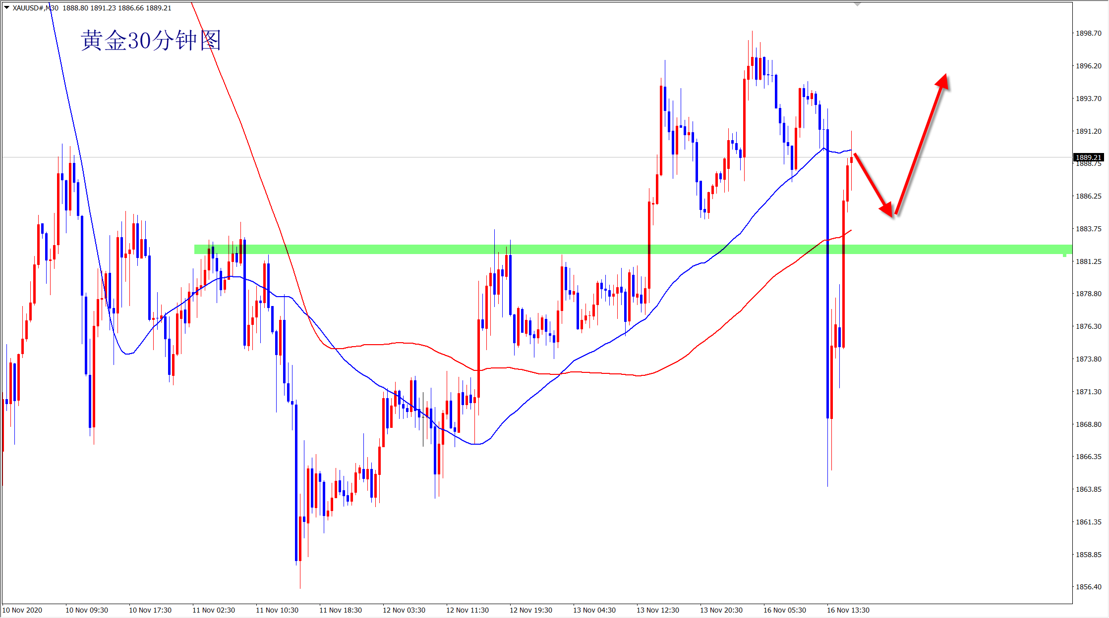 黄金今天的走势可谓是过山车刺激行情,最终没有跌破1860,而是深V翻转,走势就是如此,意外总是发生,这就是市场的神奇之处,强不再强必转弱,空头今日已经宣告夭折,接下来多头明朗,回落低多为主了,如果今日能继续突破早盘高点,接下来1906位置突破就不是问题,而上方甚至可以再次涨至1950一线!
