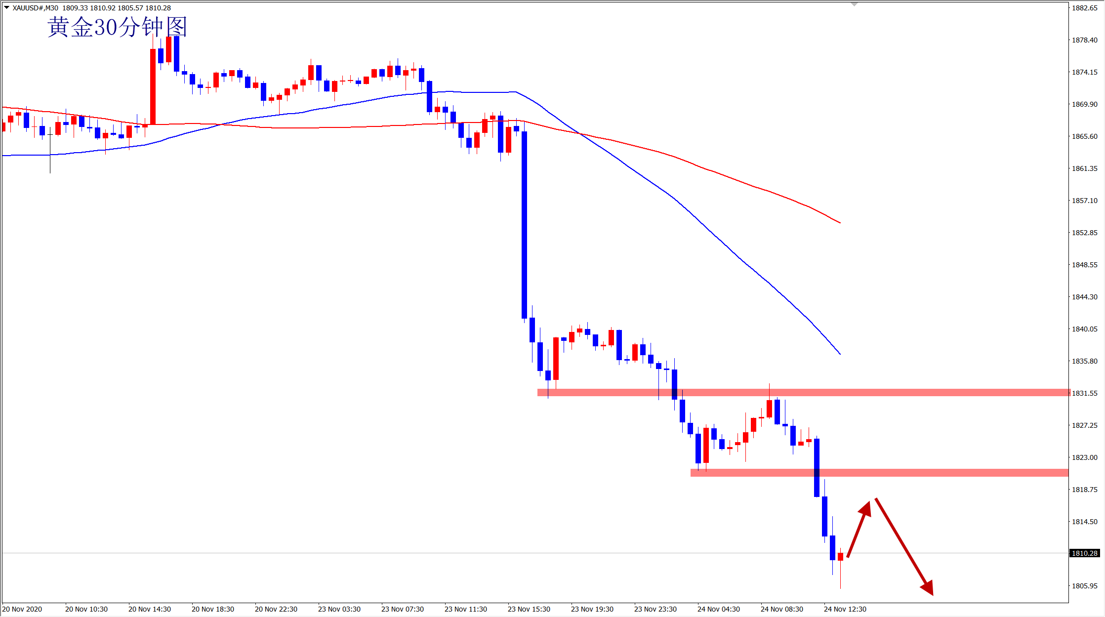 黄金1815空,保护1822,目标1805-1800;