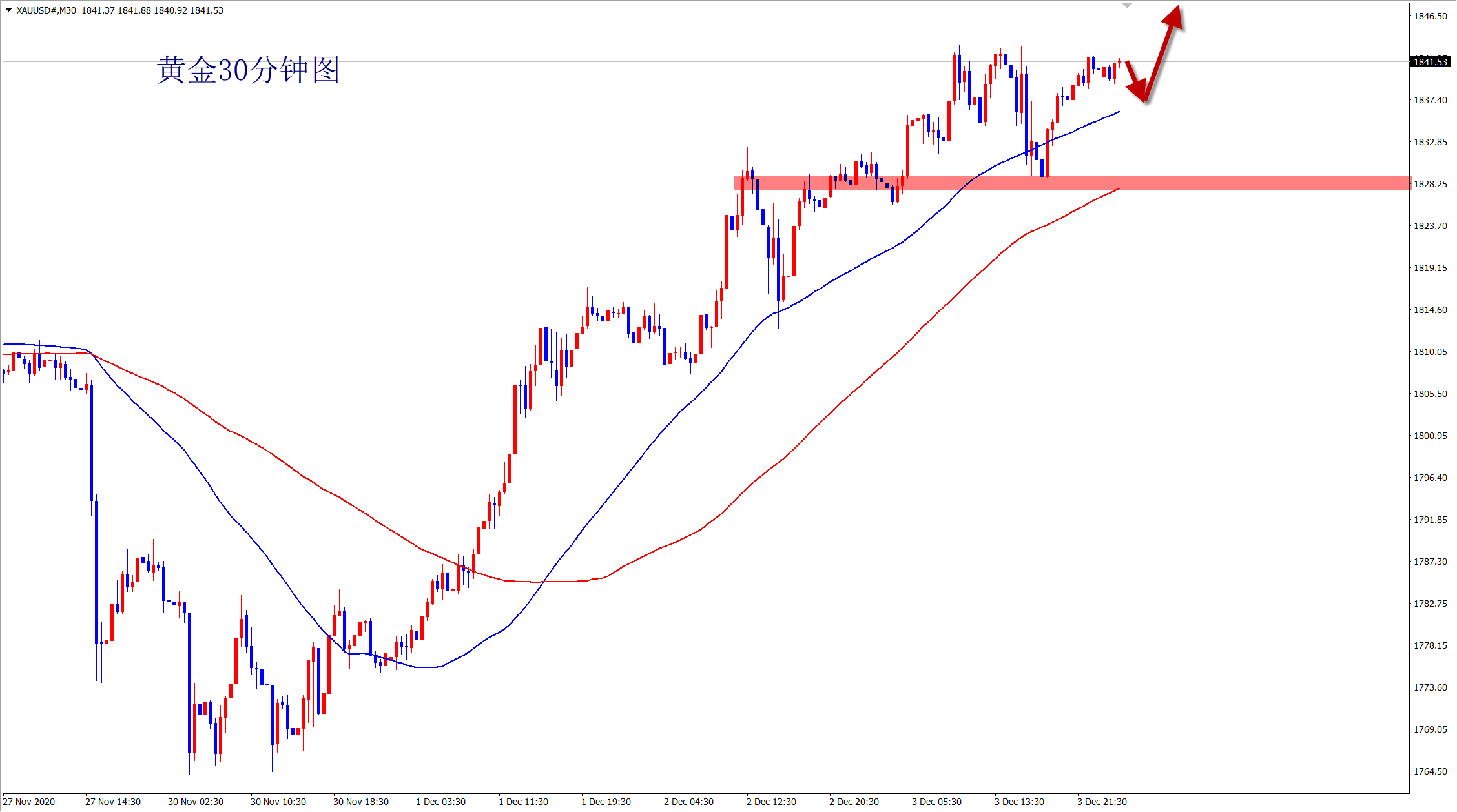 黄金1834上多,保护1826,目标1844-1850;