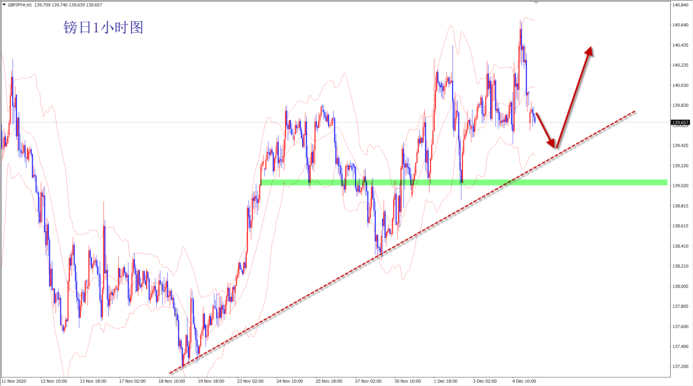 镑日从周线上看拿,属于震荡筑底过程,并且走出弧形底部特征,当前行情上方暂时承压于141位置,如果突破,镑日将开启周线级别的波段上涨走势,而当前在短线上来看,镑日也是属于震荡上涨的,只不过暂时承压遇阻开启震荡,今日我们还是继续低多为主,回落支撑位置后继续多!